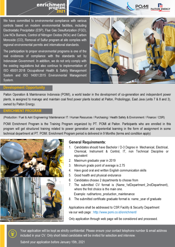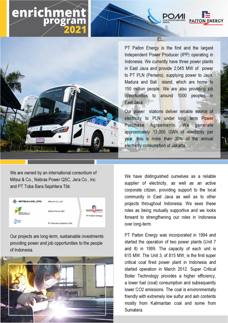 POMI Enrichment Program is the Training Program organized by PT. POMI at Paiton. Participants who are enrolled in